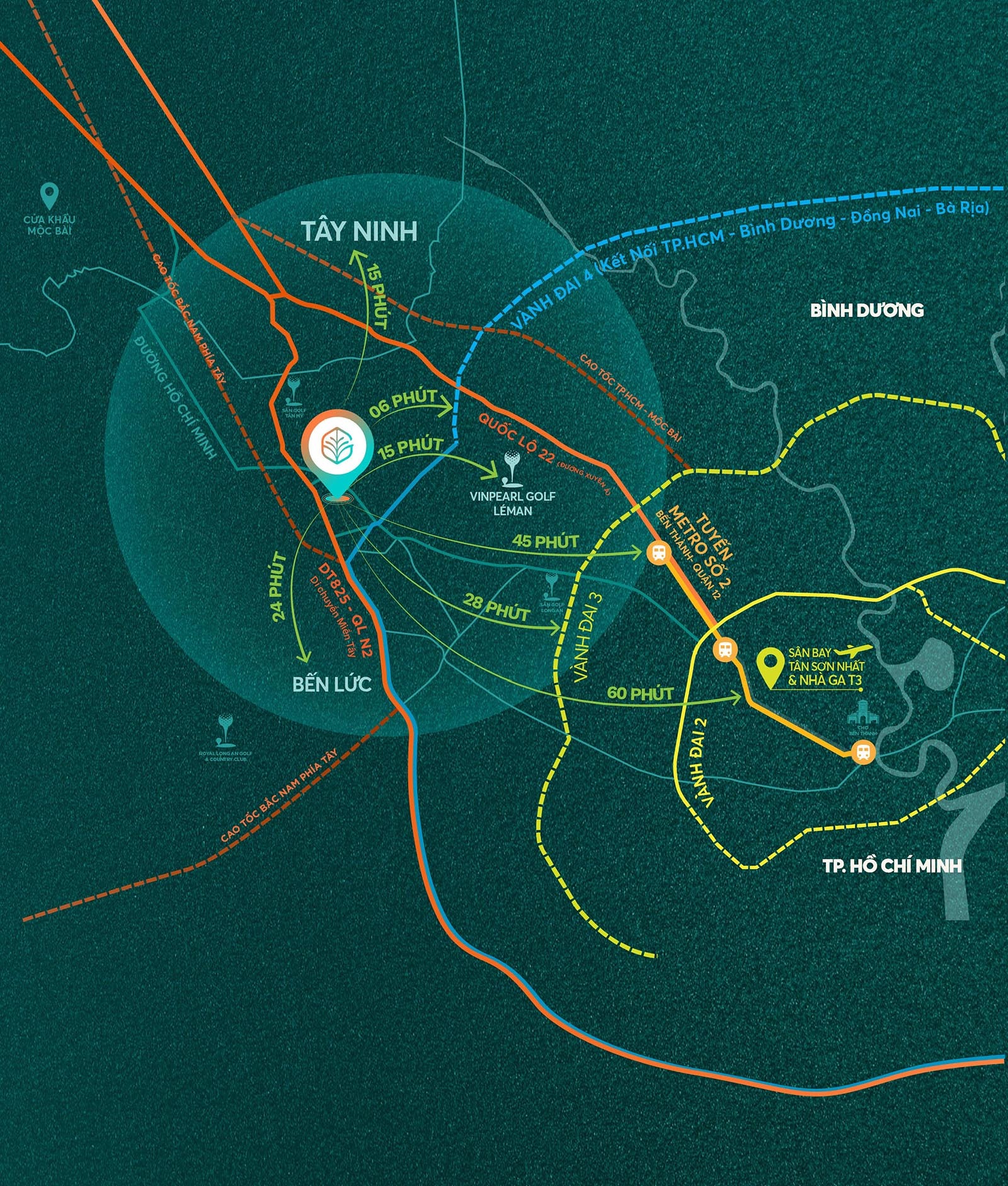 Vị trí là yếu tố quyết định đến giá trị của một dự án bất động sản và Vinhomes Green City Hậu Nghĩa hoàn toàn thỏa mãn những yêu cầu khắt khe về vị trí chiến lược. Dự án nằm trên Đường Quốc Lộ N2 thị trấn Hậu Nghĩa, ngay cửa ngõ giao thương chiến lược giữa TP. Hồ Chí Minh và các tỉnh miền Tây Nam Bộ nên được đánh giá cao về tiềm năng phát triển. Từ vị trí của Vinhomes Green City cư dân có thể kết nối thuận tiện đến TP. Hồ Chí Minh theo hướng Quốc lộ 22 (Đường Xuyên Á) hoặc đường tỉnh ĐT 10 – CT 02 (ĐT 825). Cũng như di chuyển xuống các tỉnh Tây Nam Bộ và Campuchia thông qua các tuyến giao thông huyết mạch CT02, Quốc lộ 1A hoặc Quốc lộ 22.